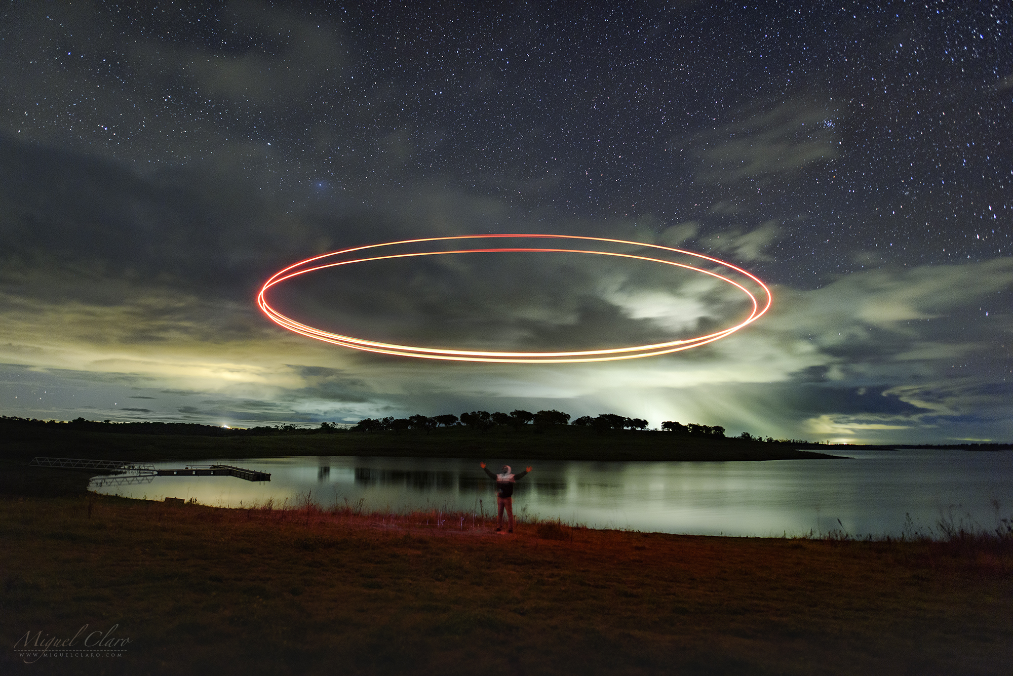 An UFO Light Painting Against the Sky of Alqueva lake