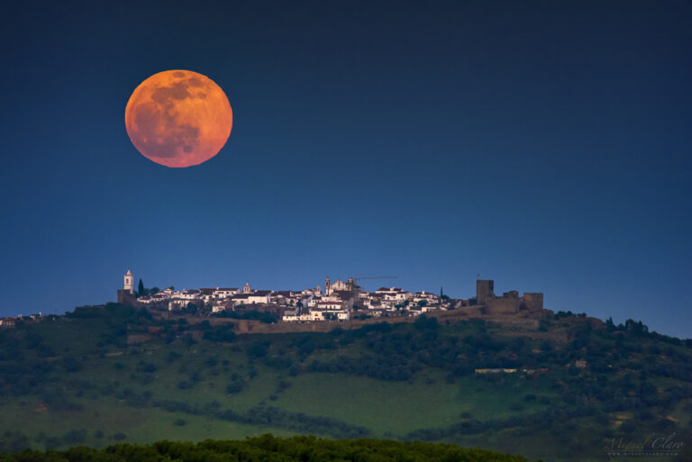 April Full Moon Rising Like an Easter Egg above Monsaraz Castle