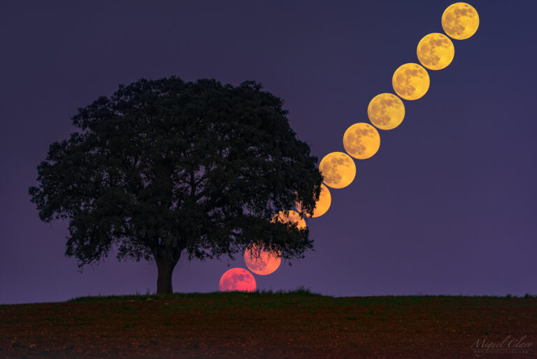 Sequence of a Super “Blue” Moon 2023 Rising Over Monsaraz Castle