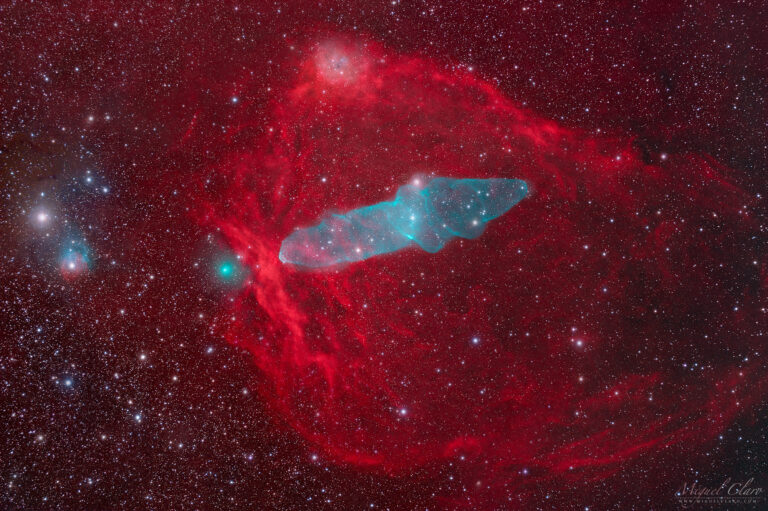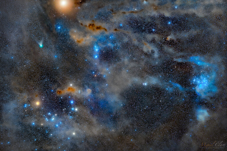 Comet C/2023 E1 Atlas In a Rare Encounter with Flying Bat and Squid Nebula