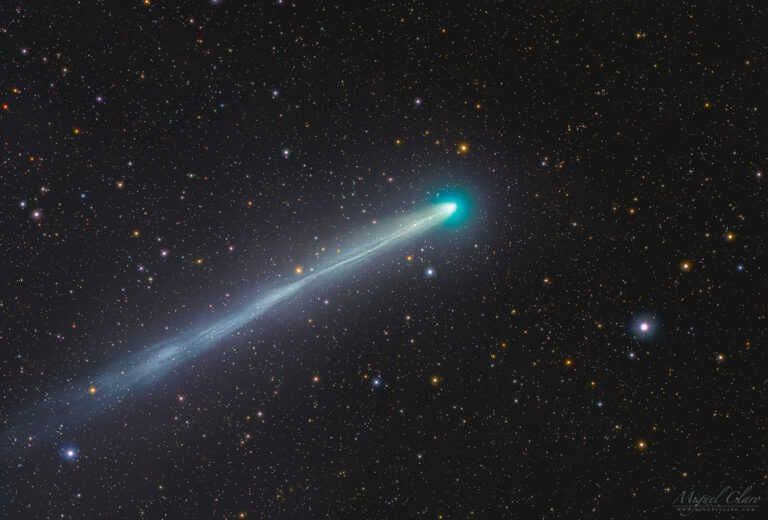 Comet E3 ZTF Showing the Tail in Perspective and Immersed in a Colorful Starfield