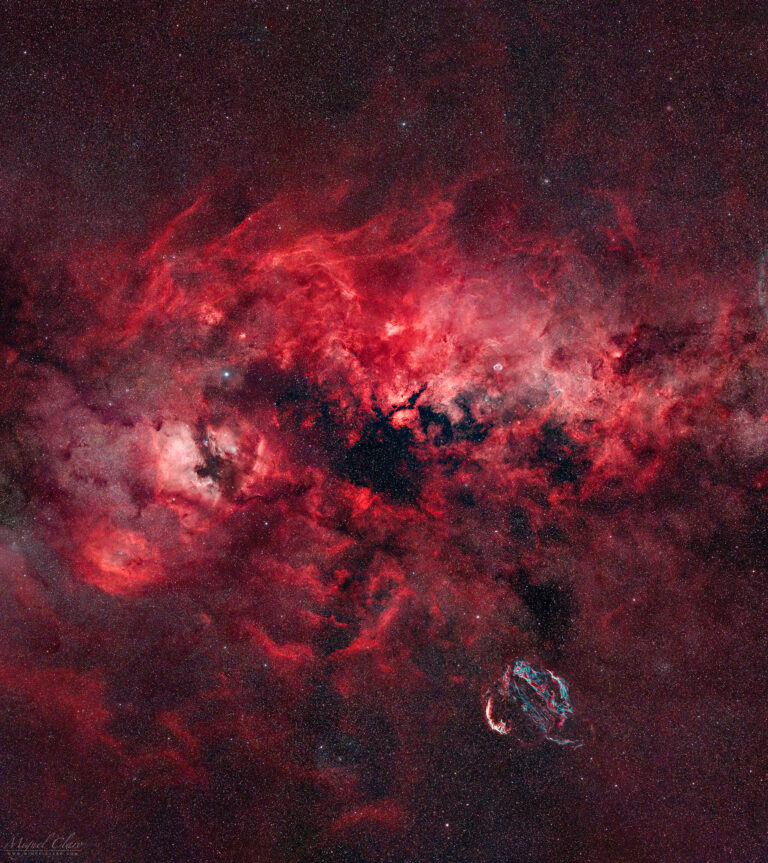 Massive Clouds of Hydrogen Gas Glowing Along Cygnus Constellation in a Deep Wide Scene