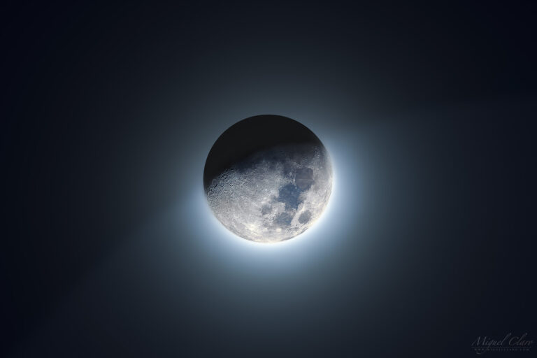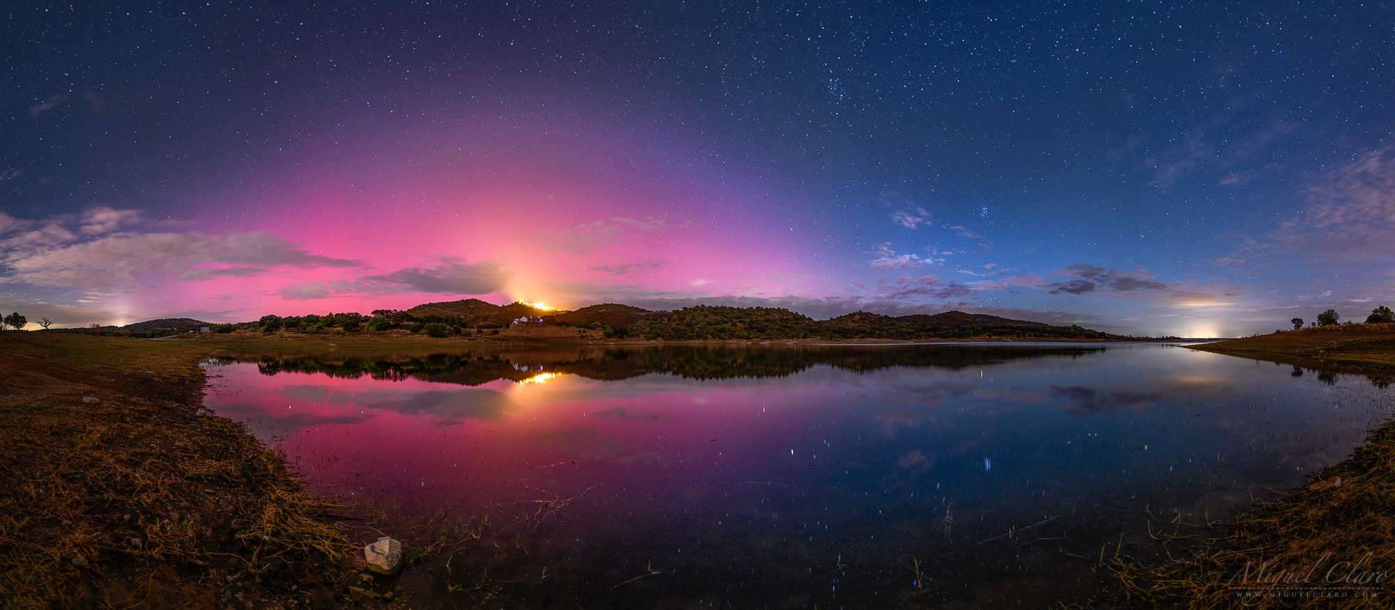 Northern Lights Under the Moonlight above Alqueva Lake at 38º Latitude, Portugal