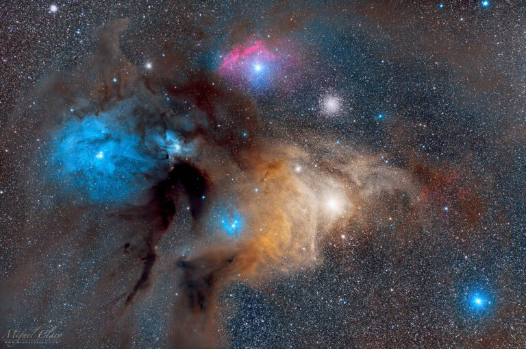 Rho Ophiuchi Cloud Complex Shining in a Colorful Close-up Scene