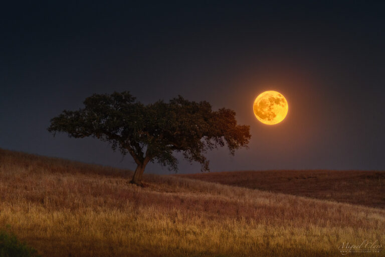 Strawberry Full Moon Rising above the Golden Fields of Dark Sky® Alqueva