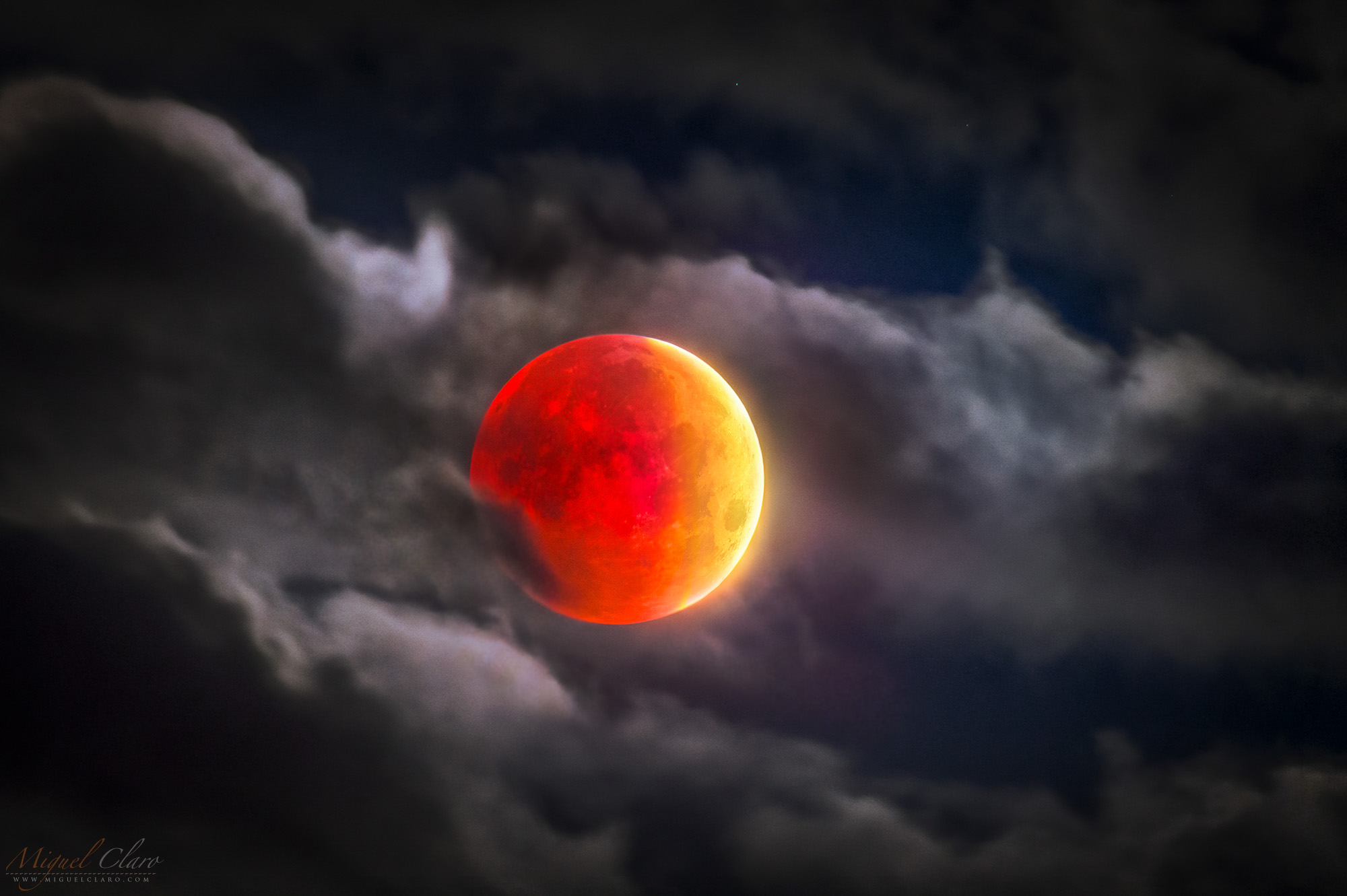 Total Lunar Eclipse Close-up Immersed in a Layer of Clouds