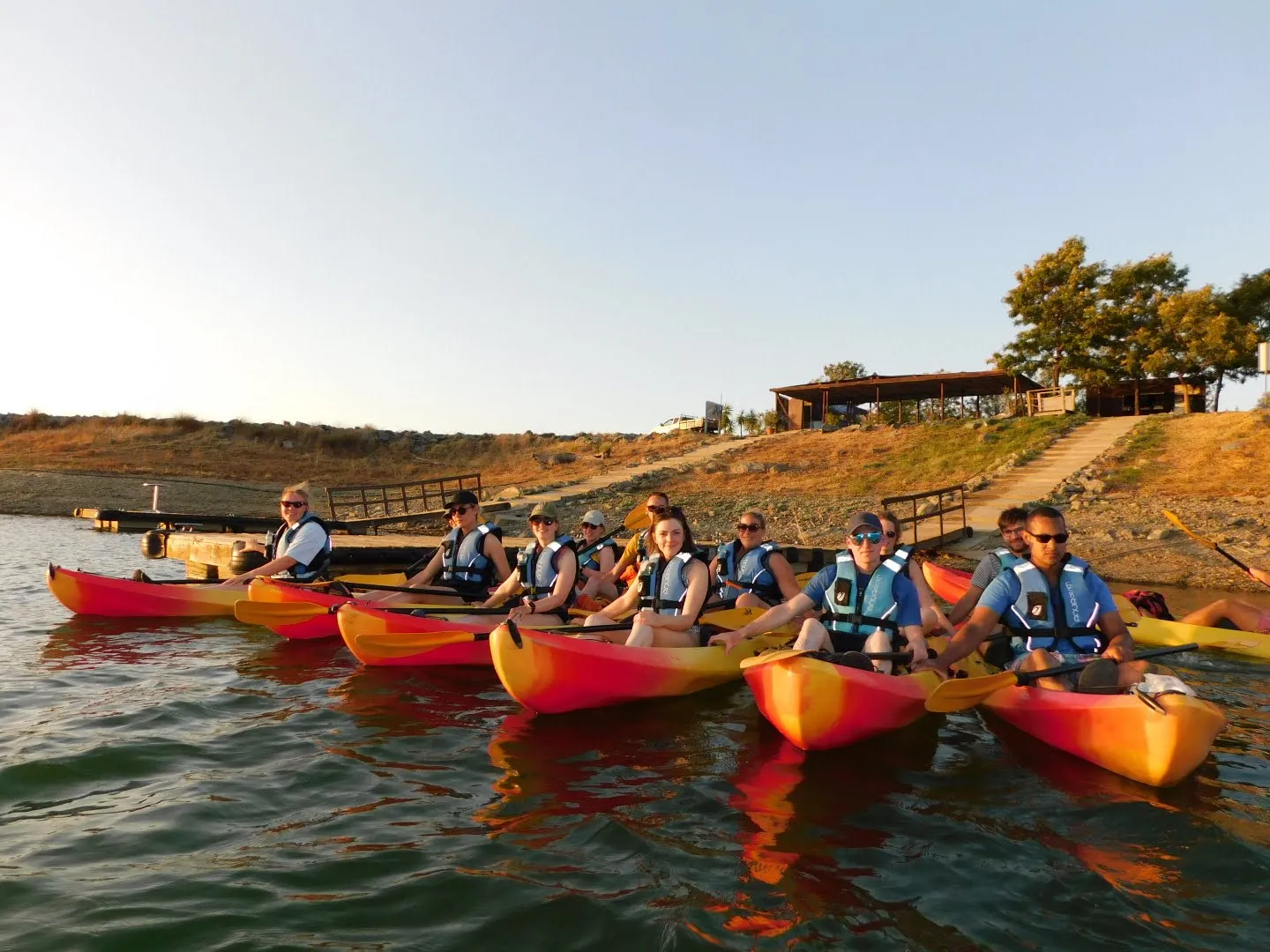 Explorar el Alqueva en canoa es una de las formas más auténticas de entrar en contacto con la naturaleza del territorio. A bordo de kayaks estables y accesibles para todos los niveles de experiencia, los participantes se deslizan suavemente sobre aguas serenas, acompañados por el paisaje ondulado del Alentejo.